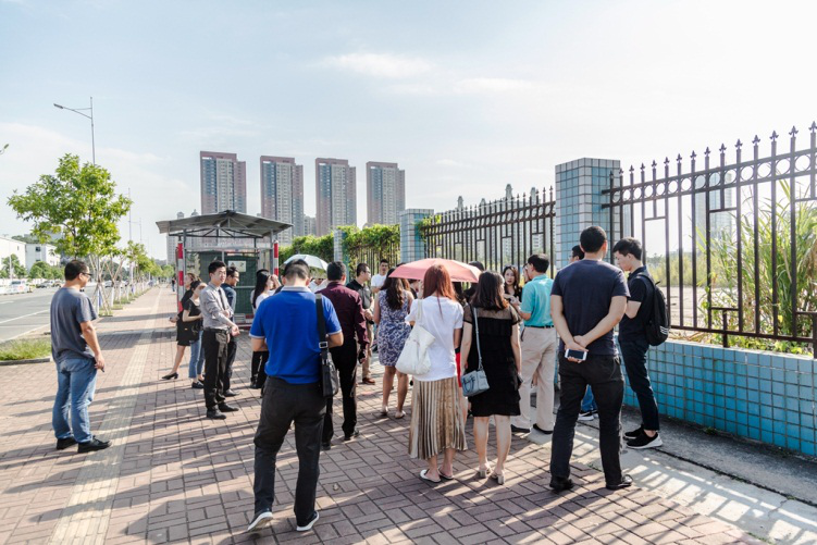 在银湖山庄短暂汇合,一行人前往地块考察。站在地块前面,可以直观的看到地块紧邻迎宾大道、湖景路,环市北路,交通十分便利,周边一眼可见的万科生活广场,悦港汇等生活配套及市政广场、图书馆、展览馆、体育馆、三正酒店市政配套齐全,真正的体现出塘厦CBD&CLD的独特性和优势。银湖山庄作为莞深标杆性豪宅,也代表了这里无愧于临深中央豪宅生活区。