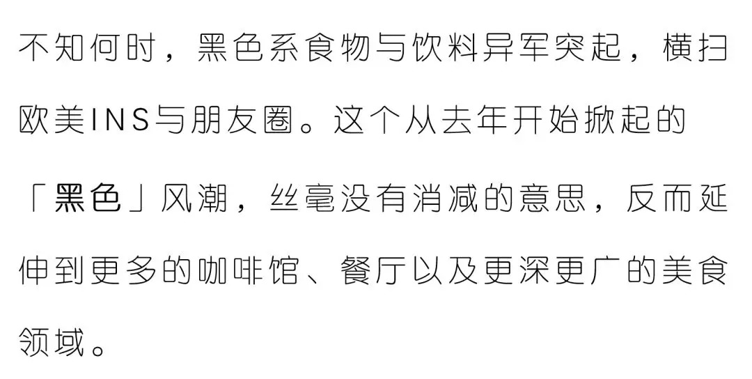 而真正让这股黑色潮流快速席卷朋友圈的,正是在INSTAGRAM上各种美食博主、时尚博主,以及不少好莱坞明星的推波助澜下,「黑色」与时尚、潮酷、健康的概念日益结合在一起。