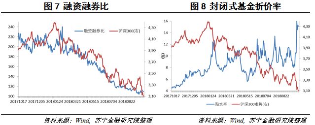融资融券比是从交易行为角度观察市场情绪的一个重要指标。2018年1月末以来,融资融券比一路下滑(见图7)。