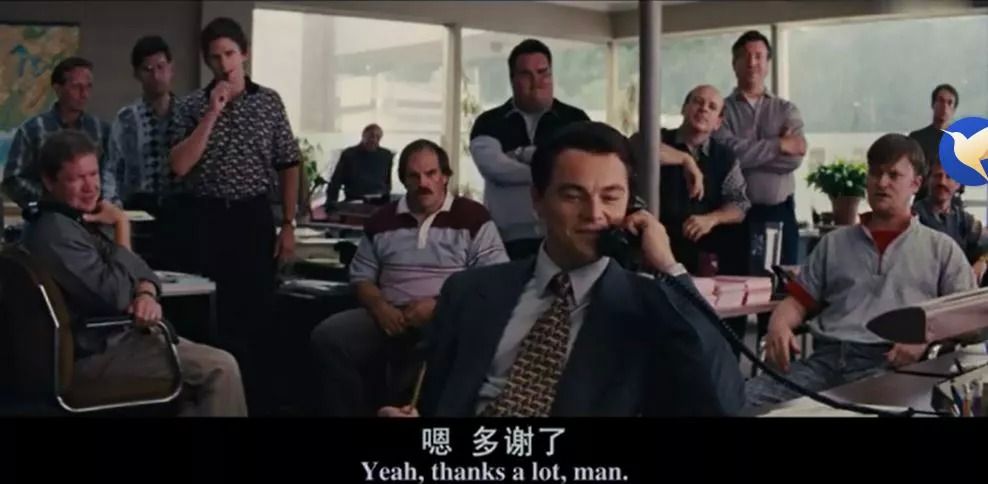 [华尔街之狼]中,小李子大展身手,靠打电话卖出垃圾股,赚了个盆满钵满。