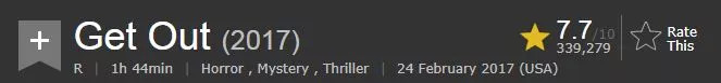 [逃出绝命镇]IMDb7.7分,烂番茄新鲜度99%,获第90届奥斯卡金像奖最佳原创剧本
