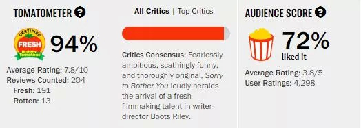 外媒常比[抱歉打扰]为“2018年的[逃出绝命镇]”,还有些媒体认为要优于后者。