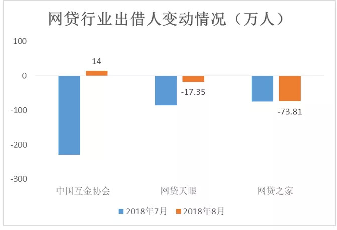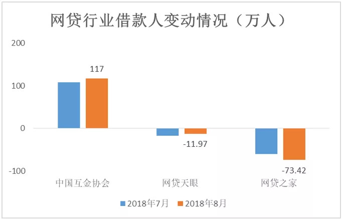 网贷天眼和网贷之家8月借款人分别减少11.97万人和73.42万人。7-8月,中国互金协会接入平台总体更受借款人认可,借款人总数反而有所上升。