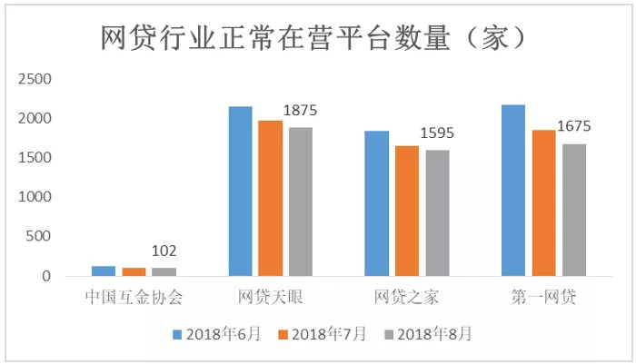 假设将正常完成信息披露工作平台视为在营平台,8月,中国互金协会在营平台数量仅为102家;网贷天眼、网贷之家和第一网贷三家机构的在营平台数量分别为1875家、1595家和1675家。在行业危机中,即使接入中国互金协会的平台经营状况也有所恶化,行业中在营机构持续减少。