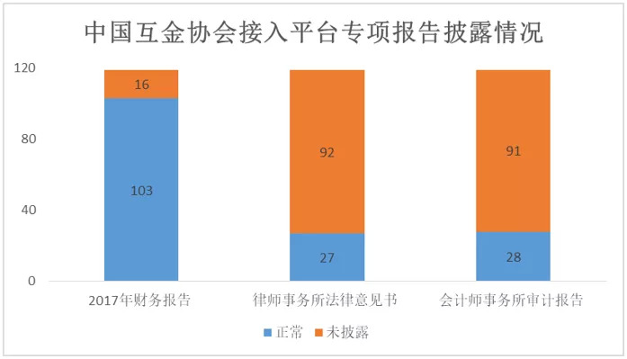未披露17年财务报告信息的仅有红岭创投。未披露律师事务所法律意见书的平台为红岭创投、陆金服、微贷网和鑫合汇。未披露会计师事务所专项审计报告的平台为红岭创投、陆金服、微贷网、鑫合汇和拍拍贷。