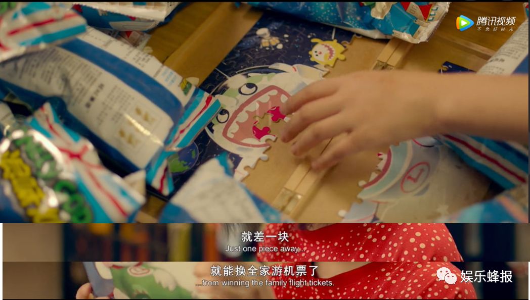 而在与剧情的关联度表现上,“浪味仙”的产品设定已经包含在故事线里。“就差一块就能换全家游机票”的活动满足了时秒想要挽救父母感情的心愿,前后的一切展开剧情都与这个设定有关。