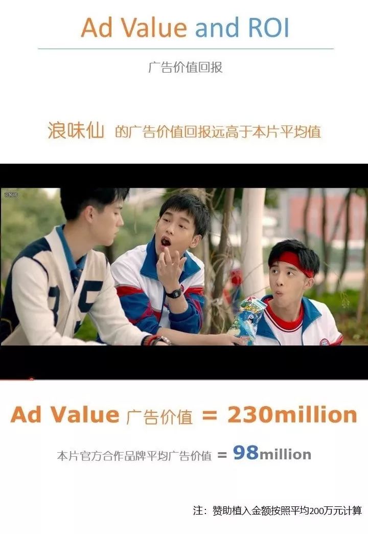 也正因为植入效果的保证,浪味仙的广告价值远高于其他官方合作品牌,是平均广告价值的2倍还多。