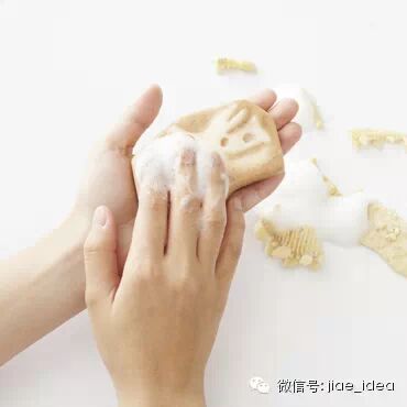 考古手工皂表面覆盖了易溶解的黄土层,洗的时候会逐渐消蚀,藏于内层的恐龙化石就会慢慢显露出来——长得还蛮呆萌的嘛。