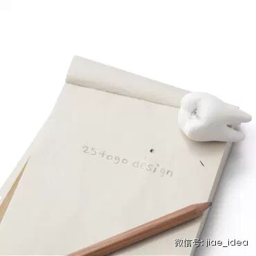 这个牙齿造型的设计品其实是橡皮擦,擦掉铅笔字它就会变成一颗蛀牙。当然,再擦下去,可能就会毁坏神经然后彻底烂掉……