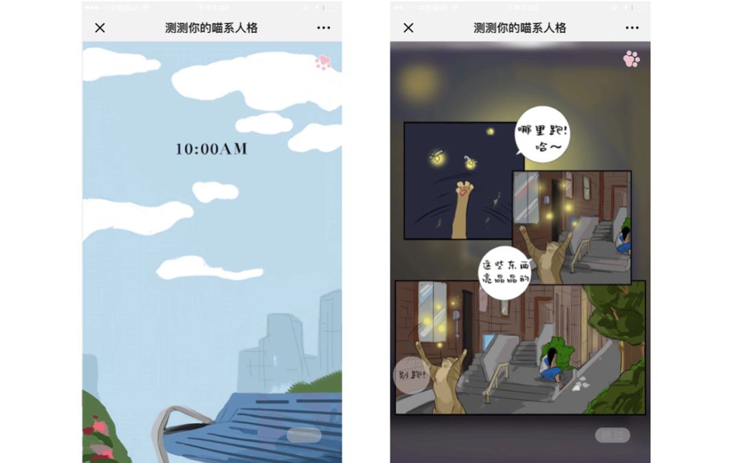 借着社交利器萌猫、网感词、以及精良制作,这支H5自27日(周六)晚上发出后,两天时间参与人数就超过了311万次。