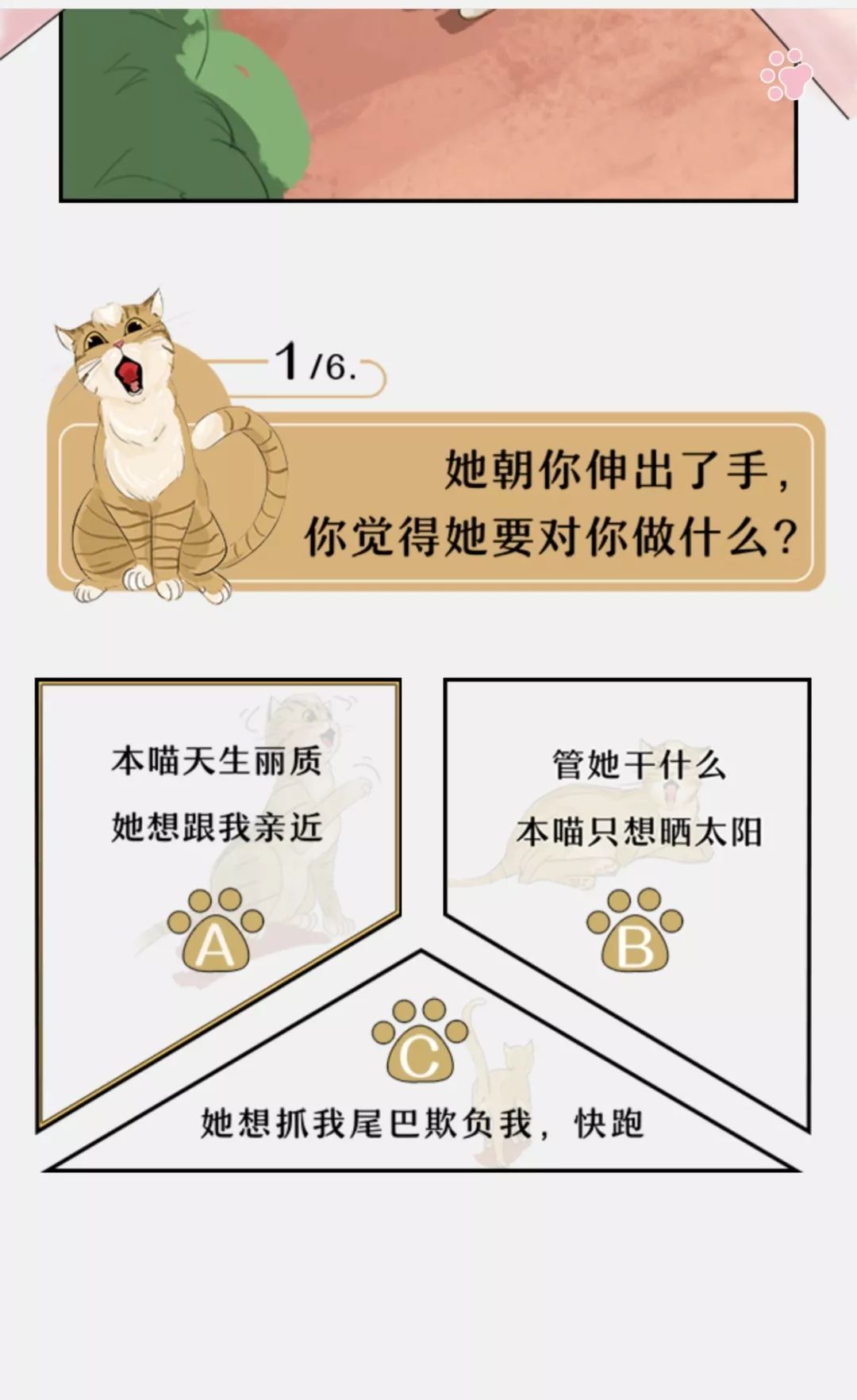 最后,根据你的选择,这支H5会告诉你,在猫界,你与哪种猫最像。以及,对于这类猫来说,爱与被爱的方式是什么。