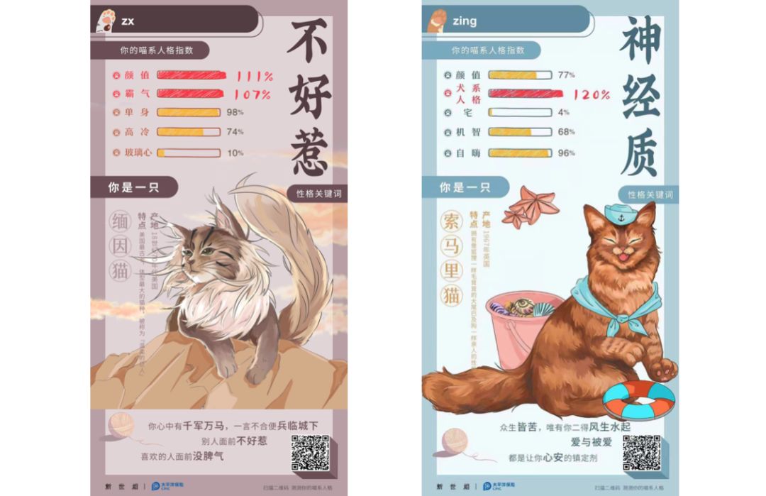 为了把“爱与被爱”这个相对严肃的概念进行进一步网感化,太平洋保险与新世相合作了这支“猫系人格”H5。