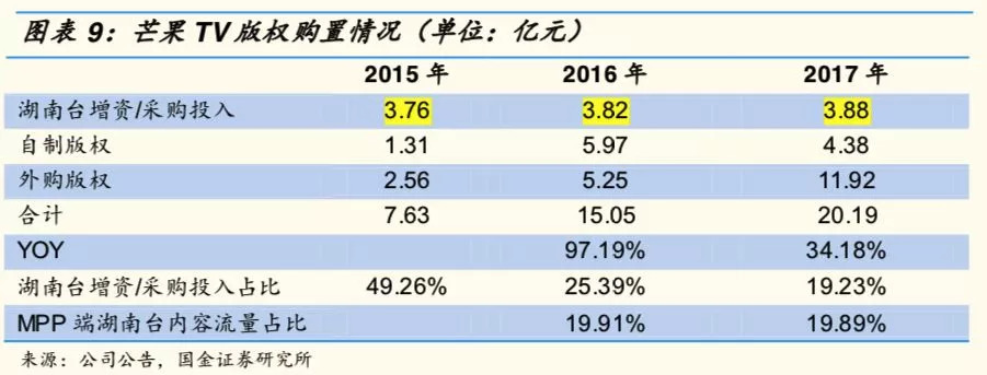 在成本端有湖南卫视这棵大树,极大地节省了采购成本。2015至2017年,芒果TV从湖南卫视采购内容的成本仅从3.7亿元上涨至3.88亿元,未来也约定了价格涨幅不超过10%,芒果TV受益于成本端的低价红利。