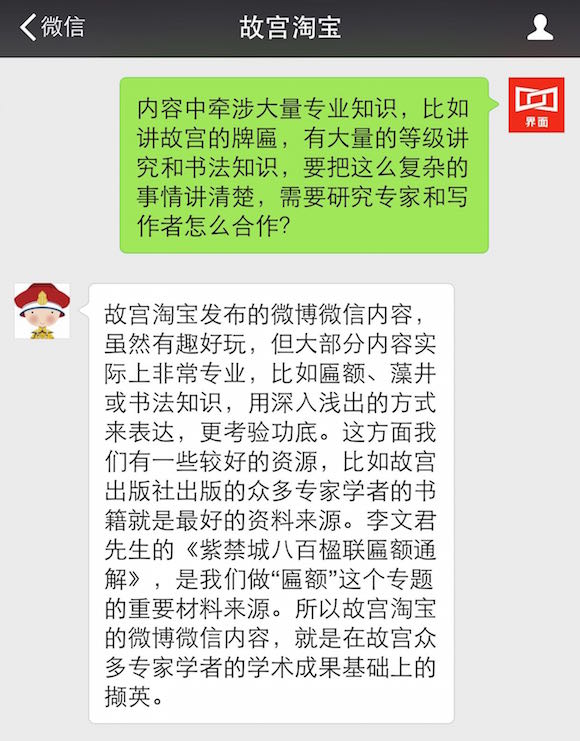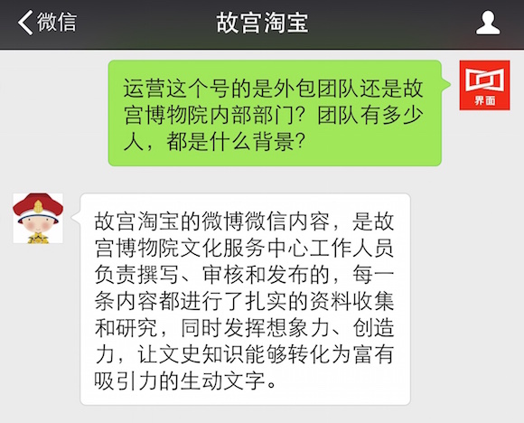 关于为什么做这个公众号、到底谁在运营这个号等问题,界面君采访了淘宝故宫君。