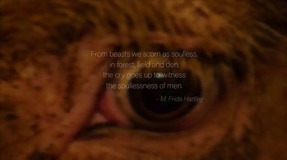 “From beasts we scorn as soulless,In forest, field and den,The cry goes up to witnessThe soullessness of men.”