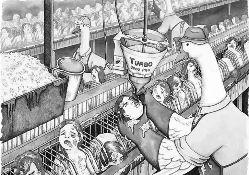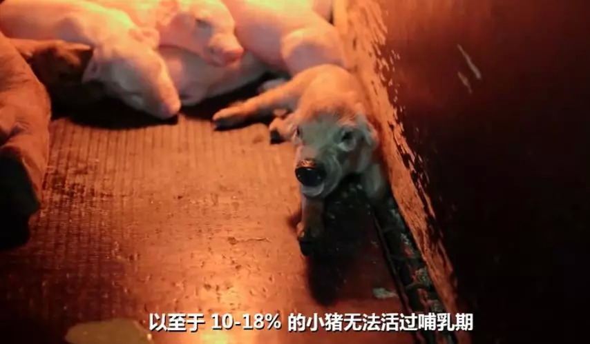因为生产数量极多,十分一的小猪没撑过哺乳期就被饿死,被环境憋死,被母猪压死,还有一部分发育不佳的猪崽死于饲养员之手一击不死,抡多两次…