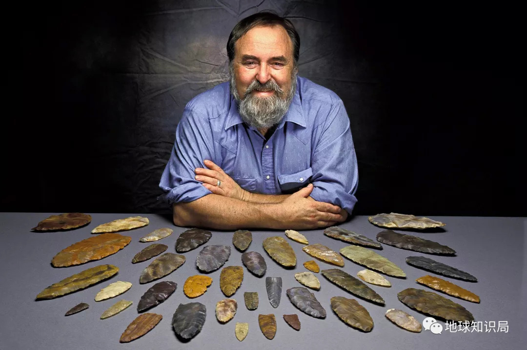 收藏家展示他收藏的克洛维斯矛尖