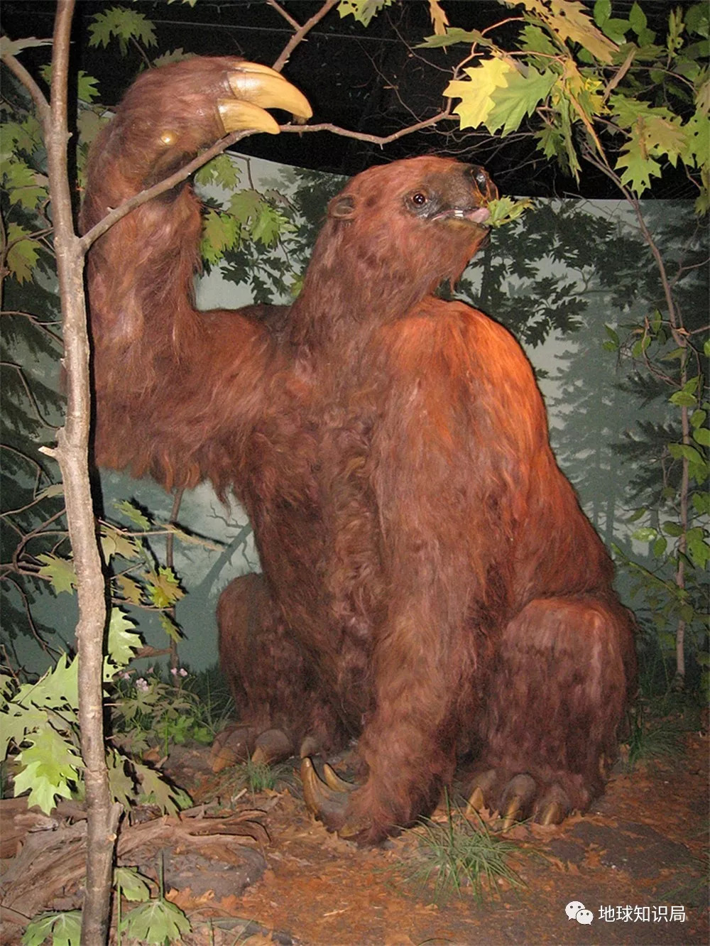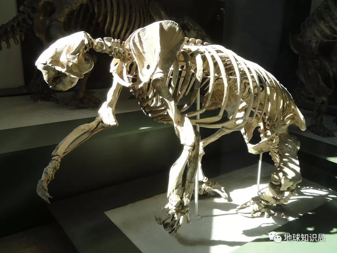 巨爪地懒的复原模型,它是一种强壮温和的动物