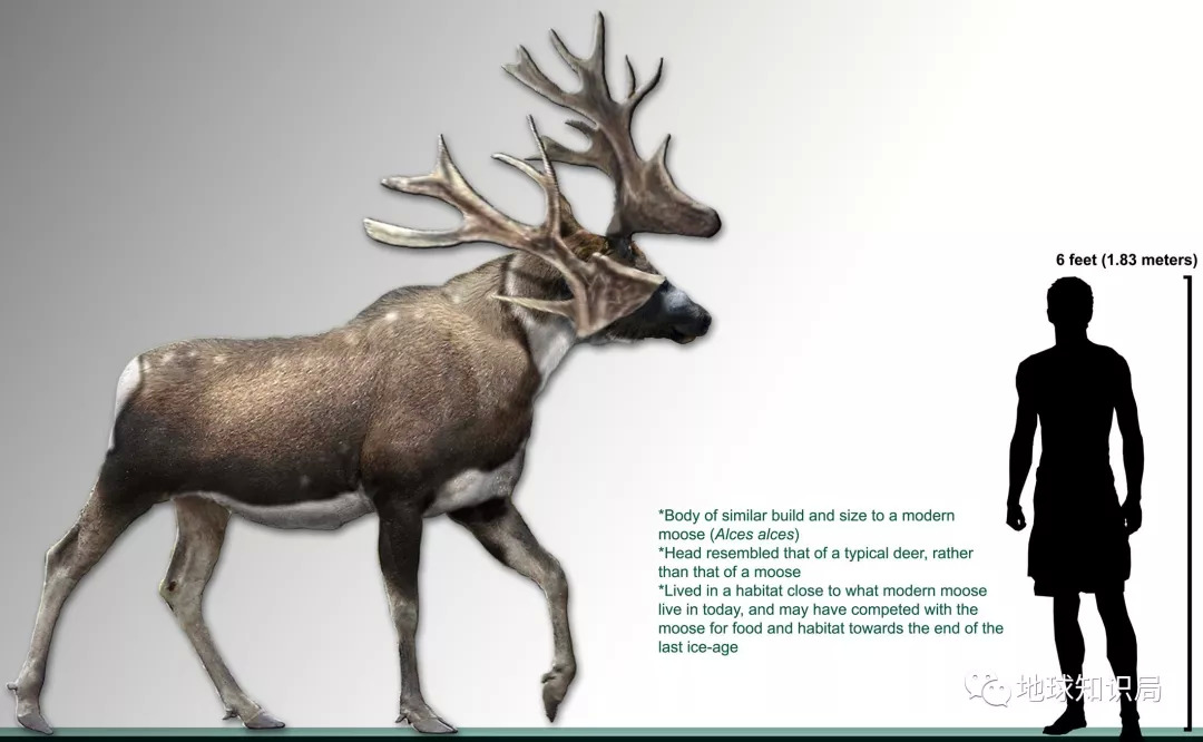 罕角驼鹿与人类的体型对比