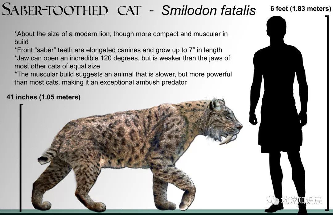 美洲拟狮与刃齿虎的体型对比