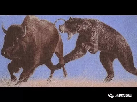 攻击美洲野牛的巨型短面熊