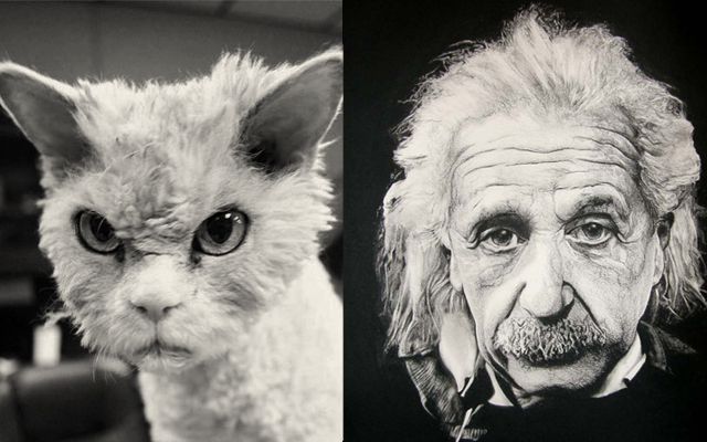 受到天才物理学家艾伯特·爱因斯坦(Albert Einstein)的启发,主人Mike &Susan Singleton夫妻将这只爱猫取名艾伯特,因为艾伯特那永远都在扭来扭去的灰色卷毛。