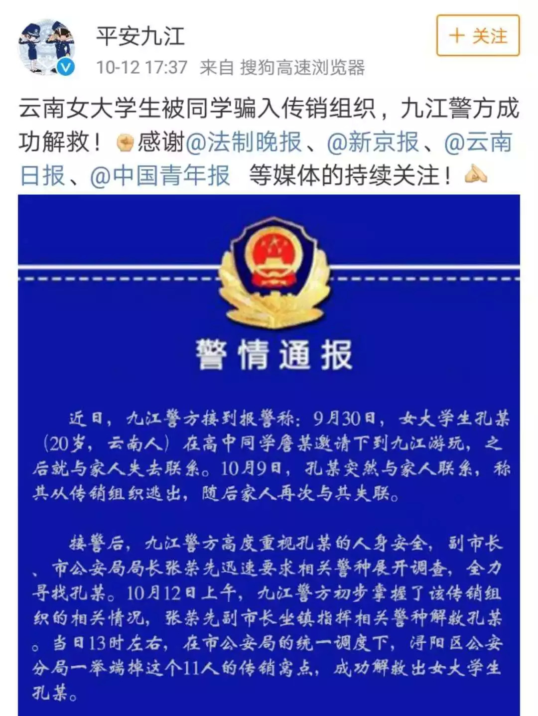 还有一位西北民族大学的女生也是请假后就“失联”,家人通过多番寻找后,怀疑她被困入“传销组织”。