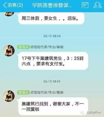 还有人觉得和老师为了请假原因斗智斗勇实在是太麻烦,干脆直接找人代替自己有偿上课,据说有时一节课上替课者能达10%,甚至已经在学校内部悄悄形成了完整的“产业链”。