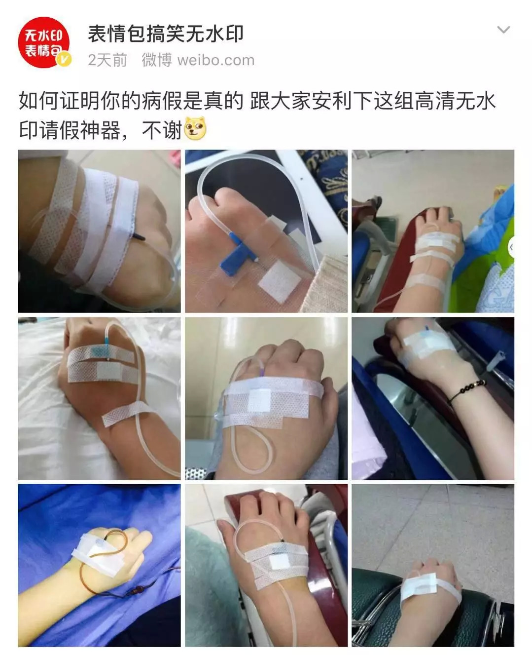 不过没想到这也防不住,反而催生了很多“病号图拿走不谢”的帖子。为了“戏”演得逼真,线上资源与线下演练相结合,就是一张生病的“高清无码输液图”。