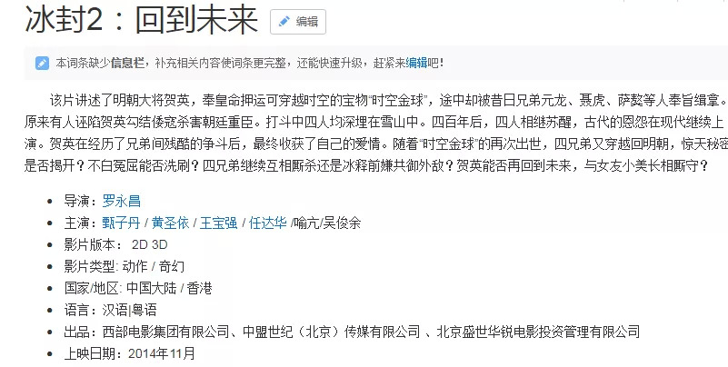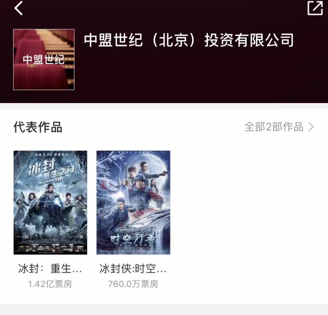 据网上资料显示,中盟世纪传媒和其母公司中盟世纪投资在影视项目上只有两部《冰封侠》,并且中盟世纪传媒还是在影片立项之初的2011年中旬刚刚成立,作为第一部联合出品方的时代先锋影艺投资公司和青岛凤凰影视传媒的履历上也只有《冰封:重生之门》一部影片。