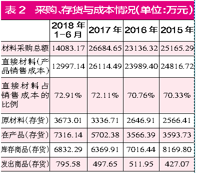 可事实上,2018年上半年的存货中,在产品、库存商品和发出商品合计增加2374.07万元,按直接材料占销售成本的比例72.91%计算,其中的原材料成本为1730.93万元,再加上存货中的原材料增加的336.30万元,存货所体现原材料及原材料成本的增加金额达到了2710.37万元,比原材料采购余下的1086.03万元还要多出981.55万元。在短短半年里,就有将近千万元的不明来由的原材料出现,显然是很异常的。