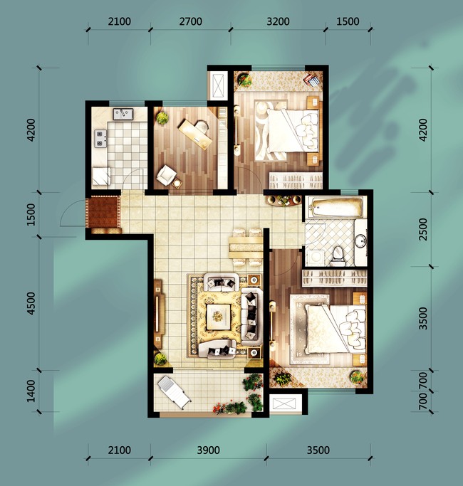 卫生间,客厅,卧室最好的分开的,或者相对分离,更多情况小户型是,两个卧室之间是卫生间,也无可厚非;