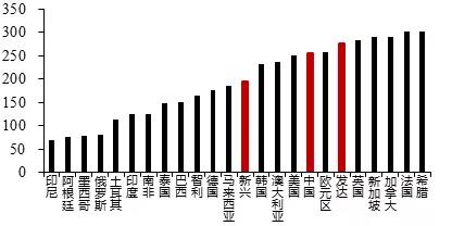 全球主要经济体的全社会杠杆率(%)