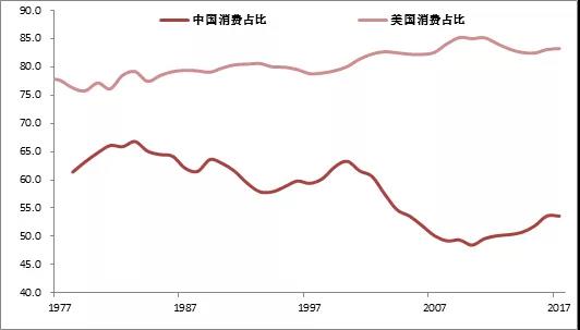 中美最终消费占GDP的比重