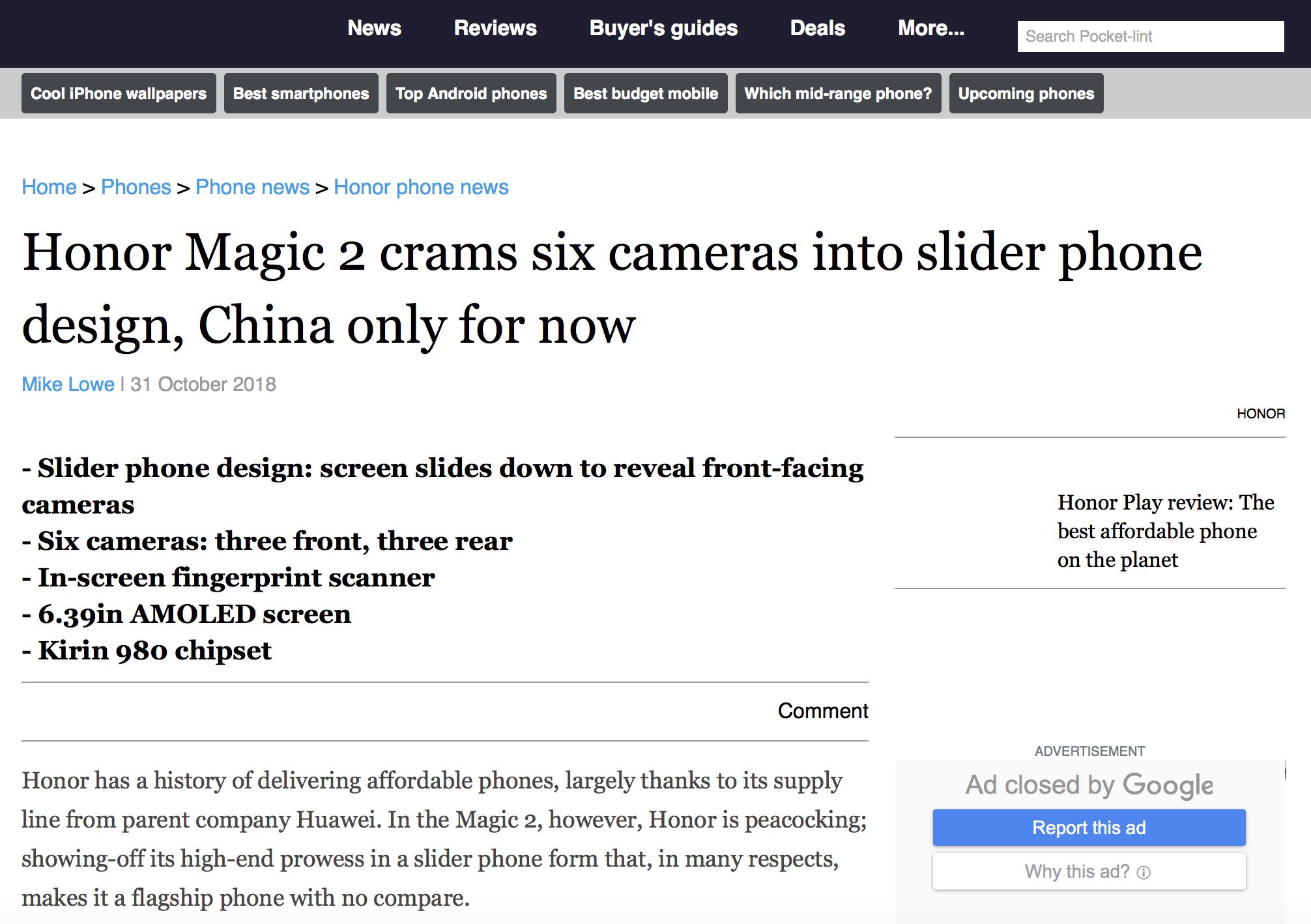 而后,在荣耀Magic2发布会后的媒体采访中,赵明再次表达了类似观点,他表示:「荣耀Magic2从未将滑屏解决自拍问题放在第一位,只是作为一个选项提出来」。