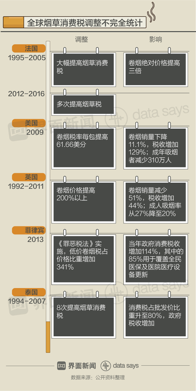 据界面新闻之前报道,中国正在试图通过立法途径来进一步提高烟草的价格和税收,以减少烟民的数量,或者减少烟草消费。同时,卷烟销量反弹,也有不少专家学者呼吁提高烟草税。