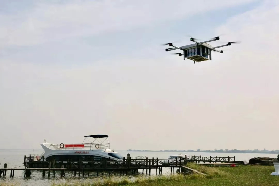 至于无人机的飞行路线,目前是湖中心至岸边包装中心。部分临岸的商家甚至可以直接接收无人机送来的货物。