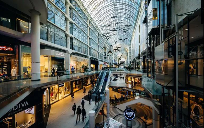 利于不同的灯光效果和艺术设计进行主题营造,以此作为区域变化转换点,增强辨识性和购物乐趣。