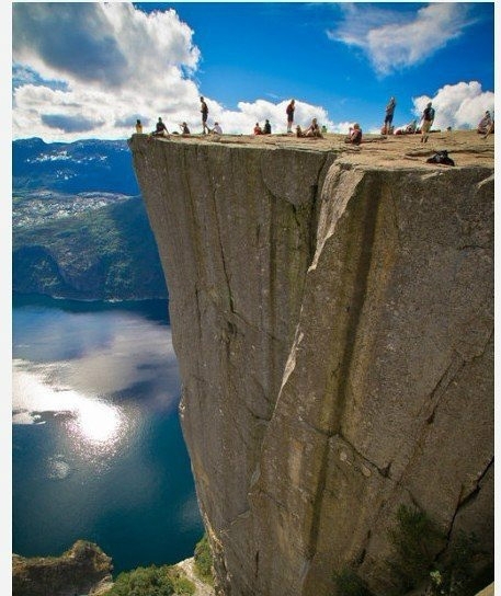 【挪威】凯斯特伦悬崖,崖顶方方正正、棱角嶙峋,垂直高度600多米,宛如天成。传说是上帝预备的布道之处,所以又称布道石。