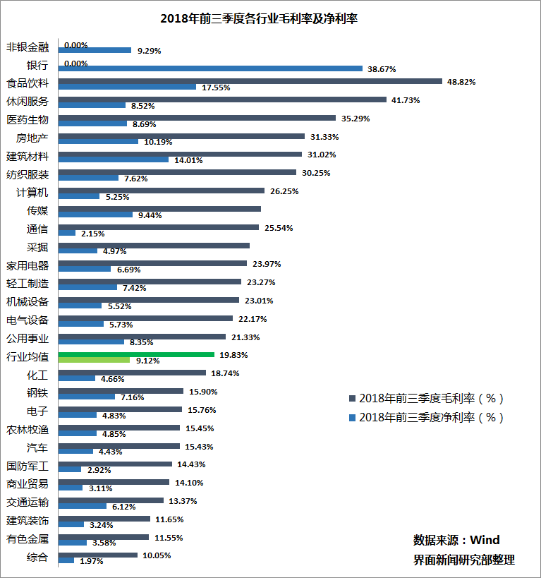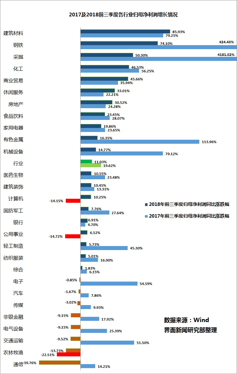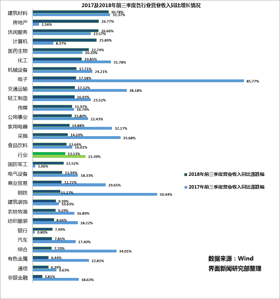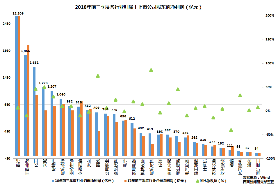 哪些行业在今年有突出表现?界面新闻从核心财务数据、核心财务比率、市场特征及市场表现的角度对各行业板块进行了分析统计。