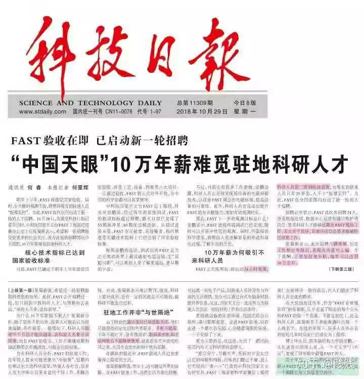 “中国天眼”FAST的招聘尴尬在于:深山老林里,三班倒,半个月才能回一次家,禁用各类电子产品,面临辐射,无编制,工资加补贴年薪十万,英语好,博士……高要求低待遇,让人如何去为祖国献青春?