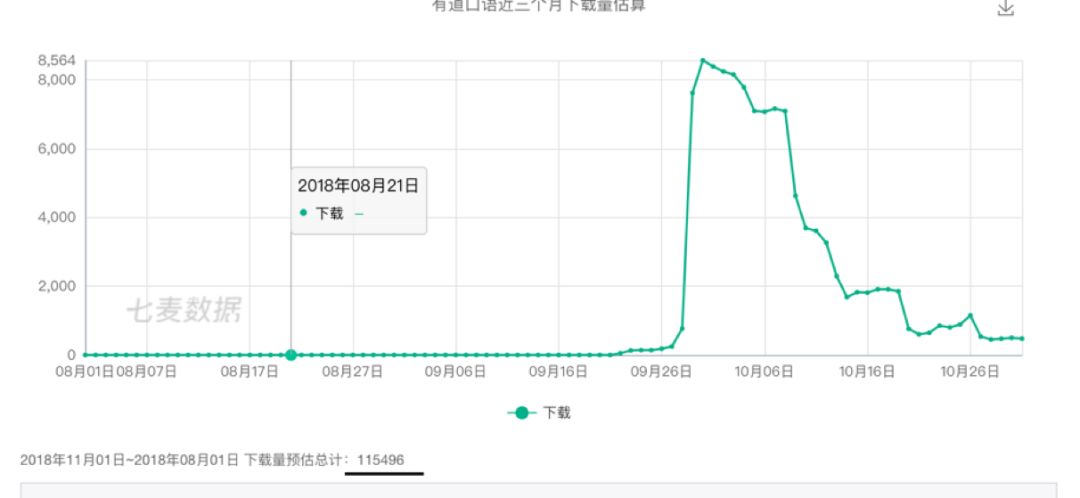 据七麦数据显示,该产品上线于2014年。截至目前,其IOS端与安卓端下载量总计约为647万次。相比于流利说约2.86亿的下载量来看,有道口语大师的市场占有率差了很多。据悉,有道口语大师目前已经在App store下架,安卓端仍可继续使用。