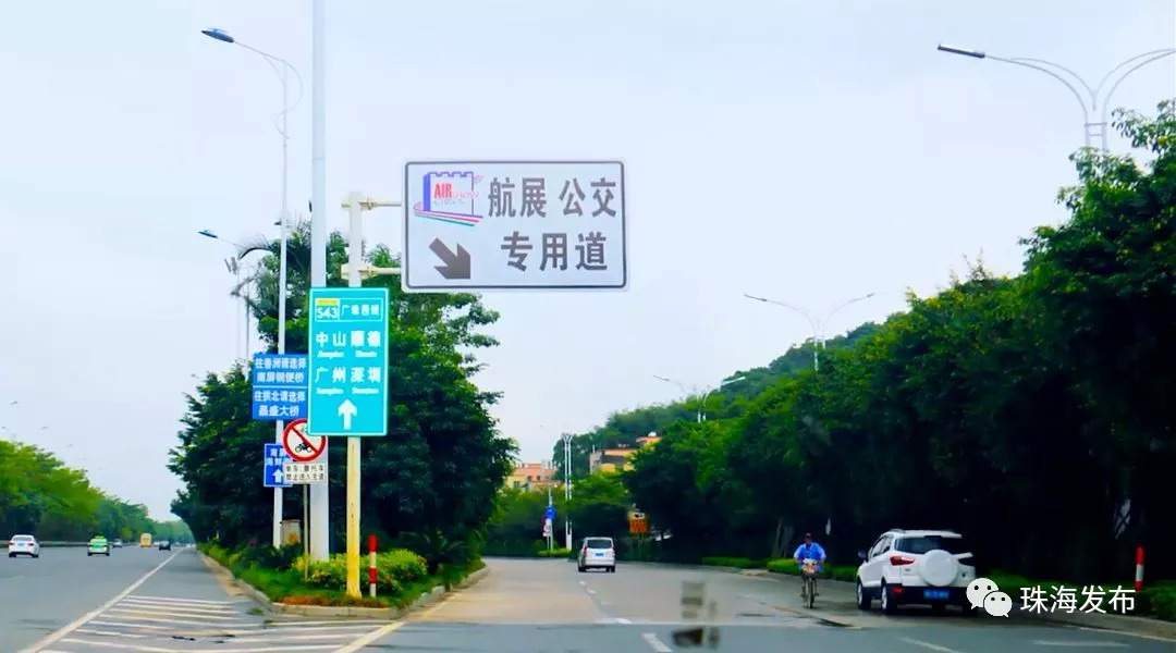 航展期间,珠海大道辅道为航展公交专用道,车辆可以短时间借用航展公交专用道通行,但必须从最近的出口驶离,不得长时间占用行驶。