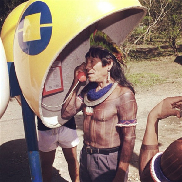 埃塞俄比亚南部的一位莫西族女性,她一首握着iPod,一手举着AK-47。