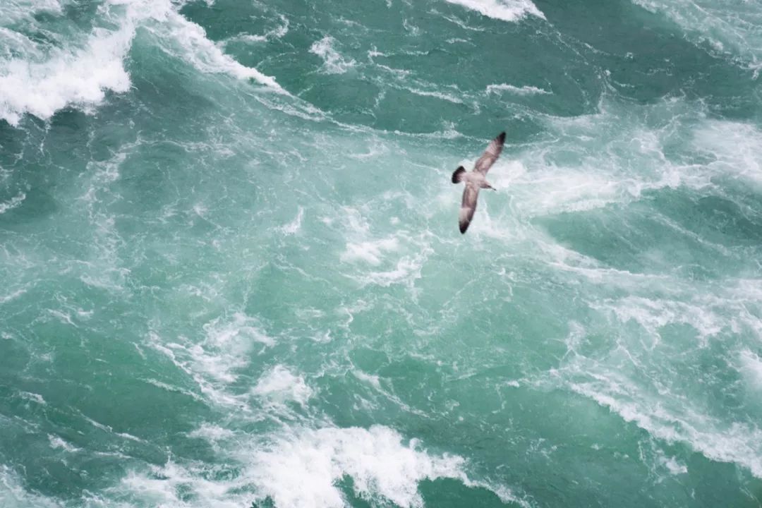 最初站在瀑布上游时,我并未得知这些信息,只能看到头顶盘旋的水鸟和远处令人眩晕的尼亚加拉河。导游为我们安排的路线是先走到马蹄瀑布后方的观景平台,但同事拉住我说:现在不走到瀑布边缘去看看,我们一辈子都会后悔的。
