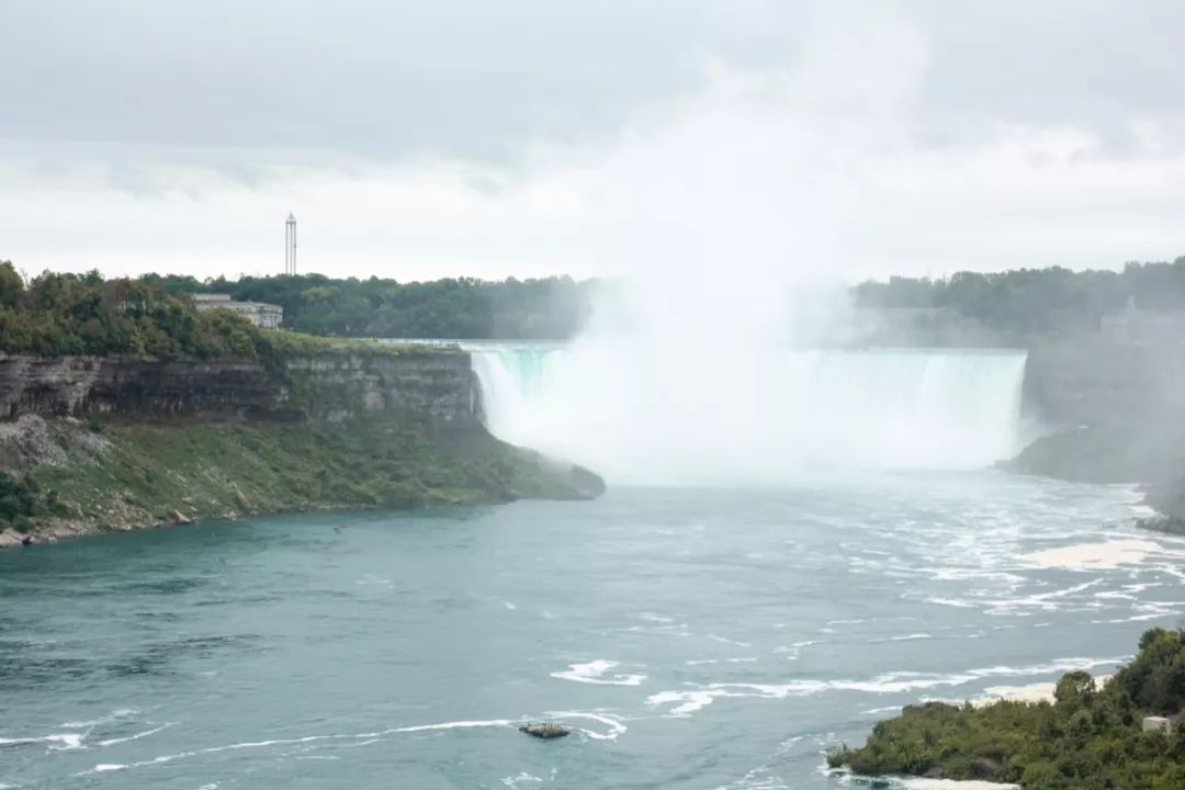 我登上 CN Tower (加拿大国家电视塔)的观景平台,看到远处连成一条线的云伸出一条小尾巴与湖面相连,塔上的工作人员提醒我那正是尼亚加拉瀑布掀起的水雾,我把镜头拉近,没想到这里才是瀑布的最后一个观景台。