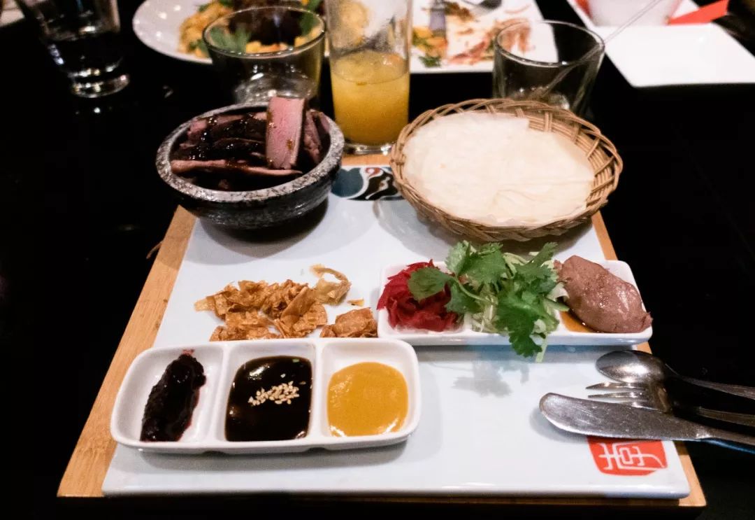 因为是亚洲混合菜,我点了这道颇有中国风格的“Char Siu Duck Breast & Confit”,竟然是用北京烤鸭的吃法卷叉烧鸭胸肉,竟然还很好吃!