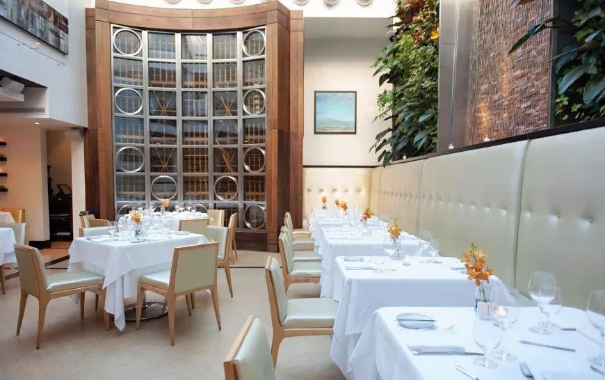 Sassafraz 餐厅坐落在约克维尔区 Bellair 和 Cumberland 的拐角处,这座造型独特的黄色小屋建造于维多利亚时期,进入餐厅首先映入眼帘的是一面纯植物装饰墙。