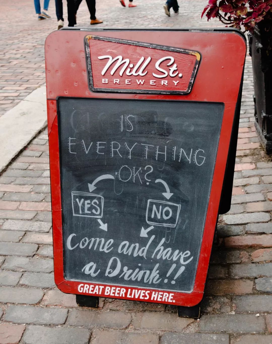 这家啤酒吧则位于啤酒厂的门面处,我在吧台点了一杯精酿啤酒,闲坐了一会,走出门外才注意到这个标示牌,自觉回去又喝了一杯。