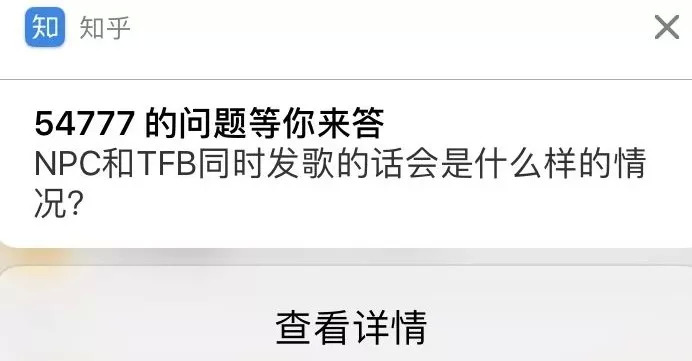 刚刚,知乎又给硬糖君发来新推荐:NPC和TFB同时发歌的话会是什么样的情况?